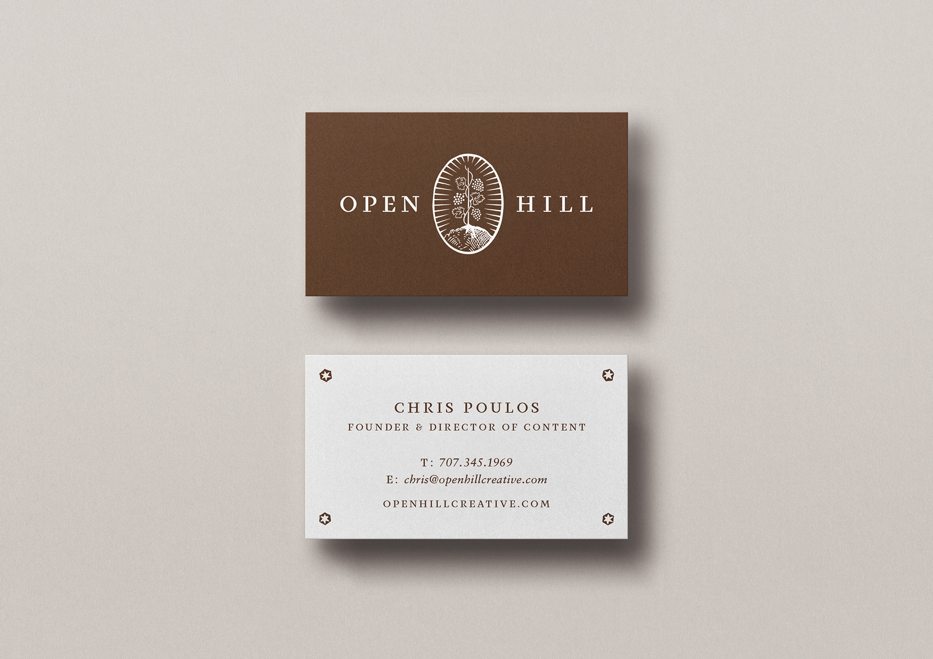 I worked with copywriter Chris Poulos to develop a simple yet expressive logo and website that refects his approach to working with clients. The typography contains subtle “open” elements that reinforce the open mind needed to create custom content as well as the open hills on which many of his clients’ vineyards thrive.